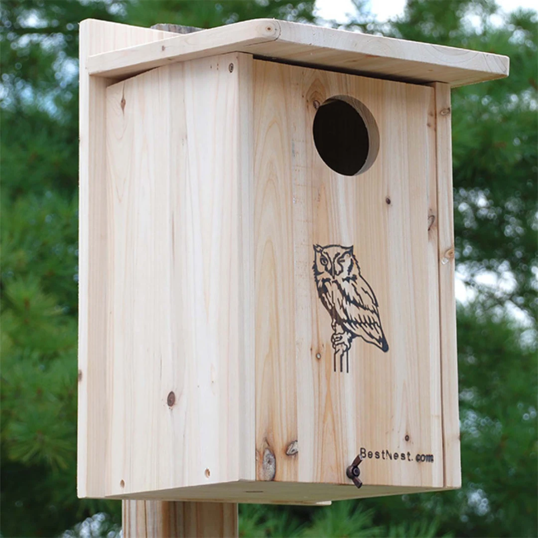 Easily mount this house to a tree or post with its pre-drilled design. Built to last with durable hardware and natural aesthetics, this roost is perfect for inviting kestrels and screech owls into your backyard sanctuary. Enhance your yard and support bird conservation with this premium nesting solution!