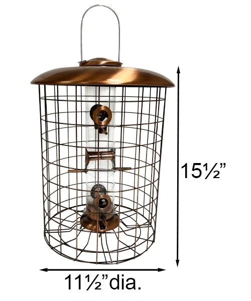 Enhance your birdwatching experience with the Squirrel-Resistant Caged Copper Tube Seed Feast Bird Feeder. Designed to thwart squirrels and provide a secure haven for small songbirds, this feeder boasts 1.5″ fencing for exclusive perching by songbirds. Crafted with durable polycarbonate plastic, the tube accommodates 1 quart of sunflower or mixed seed.
