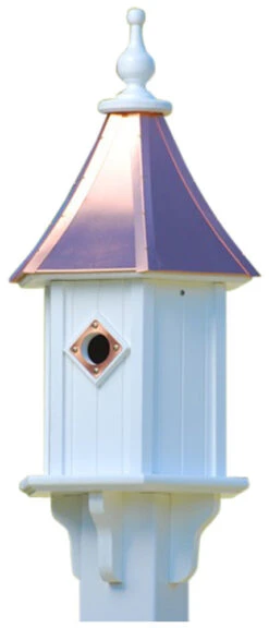 Classic copper roof bird feeder is a distinctive addition to any garden or landscape. Complete with vinyl mounting collar – fits on your 4 x 4 post. (post not included).