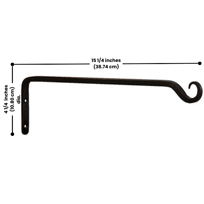 The spacious 14.5″ wall clearance allows for hanging items up to 28″ in diameter, offering great versatility. A sturdy backplate with pre-drilled holes ensures quick and reliable installation using the included stainless steel screws. Whether mounted on a wall, fence post, or wooden beam, this robust and elegant hook is ideal for adding a classic touch to any space.