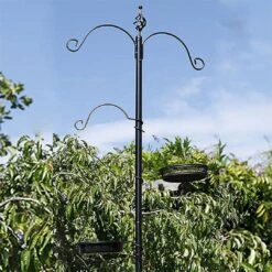 Branch style feeder pole attachment lets you add additional feeders to your existing bird feeder pole. Heavy duty powder coat steel makes this bracket last, pretty branch style with leaf design makes it attractive too. Innovative design offers several spots for feeder placement.