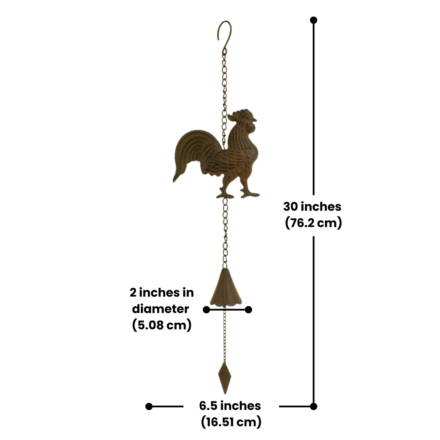 - Material: Tin Rooster with Iron Bell