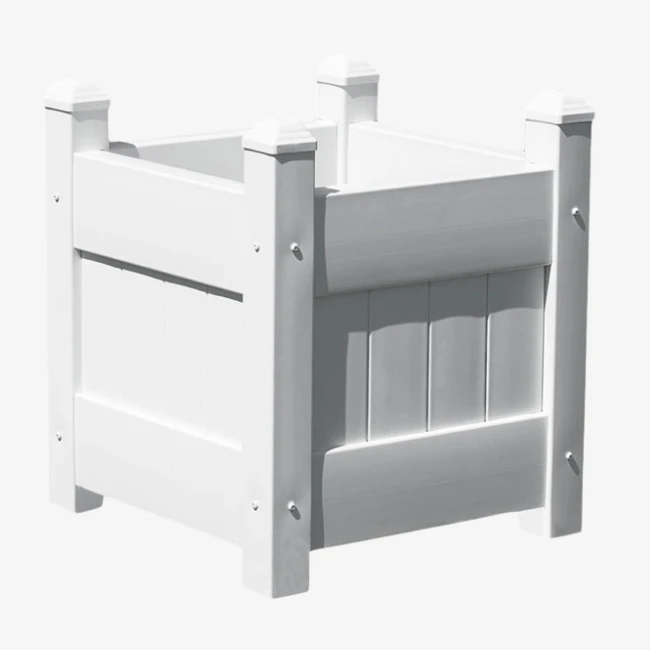 Give your patio, deck, or garden a fresh, coastal vibe with the 16″ White Vinyl Planter Box! This durable, all-vinyl planter features a classic slatted design and pyramidal caps, adding timeless charm to any outdoor space.